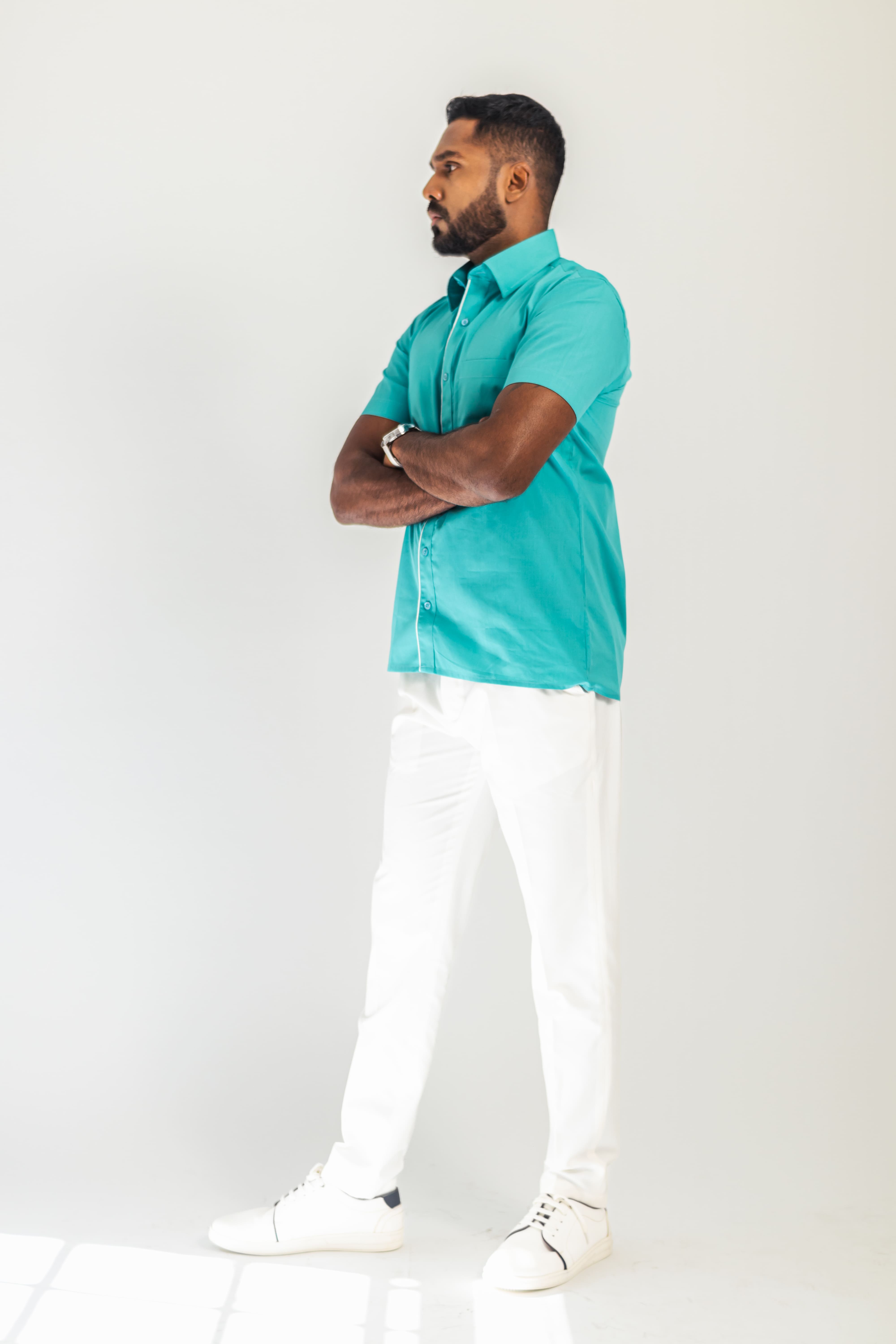 Simple yet stylish, our JULIEN shirt has a classic collar, short sleeves, a chest pocket, and a contrast piping along the buttoned placket.