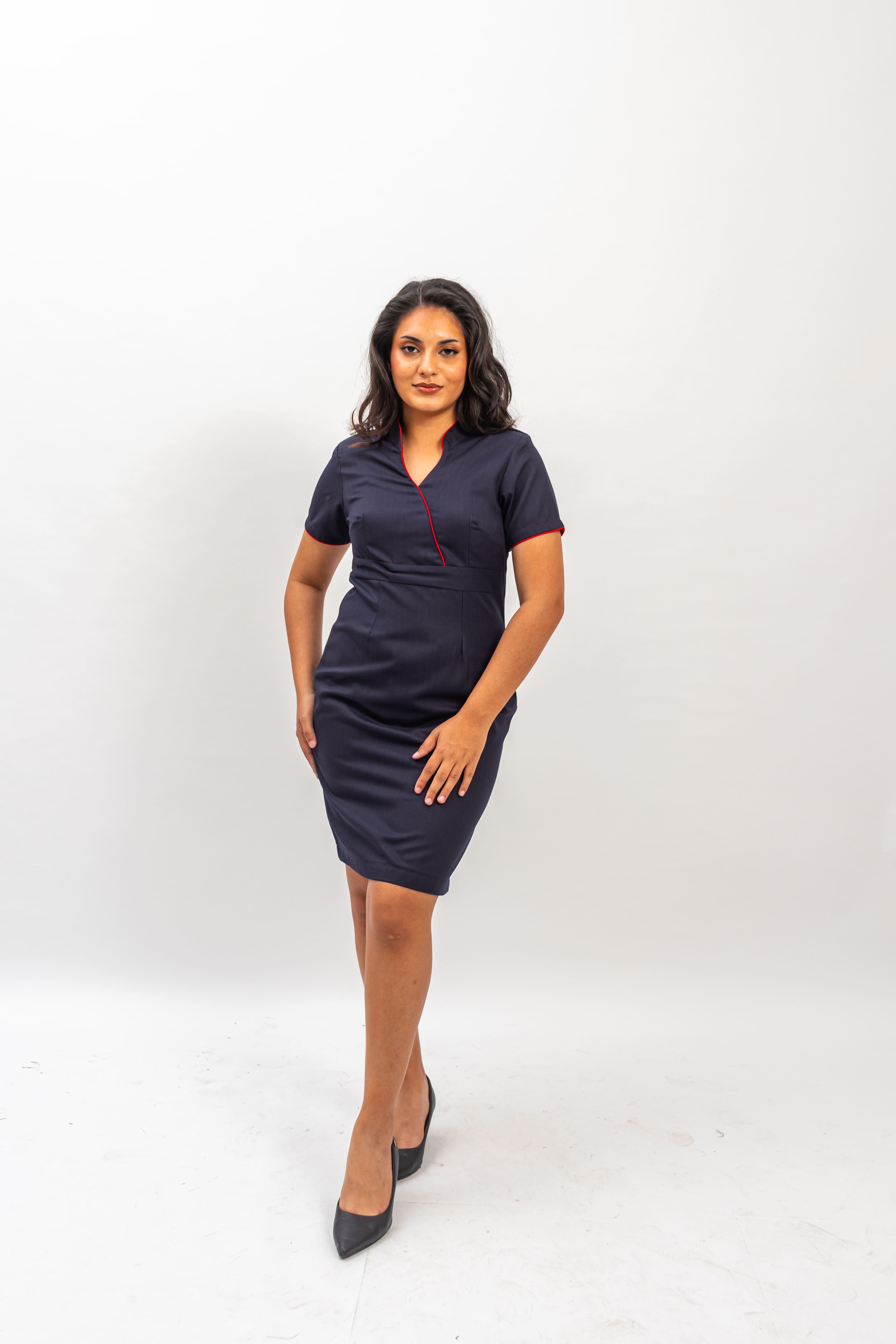 A contrasted Mao-collared dress with V-cut in crossover style, and contrasted piping on the sleeves, KARLA is sure to make you stand out from the crowd.
